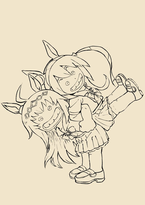 オグタマ絵です。 #ウマ娘 #タマモクロス #オグリキャップ #じゃリン子チエ #トレス