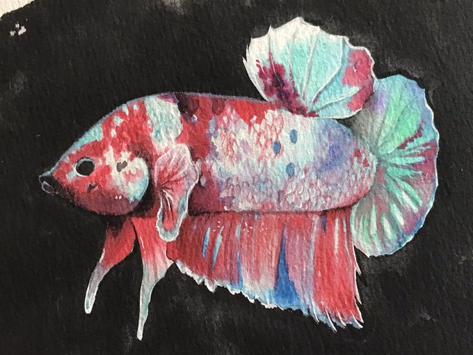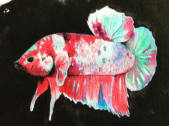 よこはま金魚本店さんのこのベタちゃん描きました☺️ 薄いグリーンに赤が映えてめちゃくちゃ綺麗な子です💓 ちょっとぷっくりしてしまった… ※イラスト化の許可は頂いてます。ありがとうございます♪ #ベタ #水彩 #イラスト #アクアリウム #熱帯魚 #カラーインク twitter.com/yokohamaking…