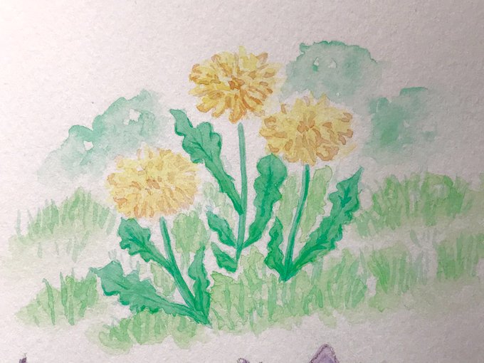 花練習 お花難しい🌼 #たんぽぽ #桔梗 #紫陽花 #水彩 #顔彩 #イラスト