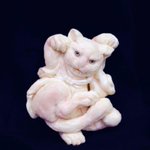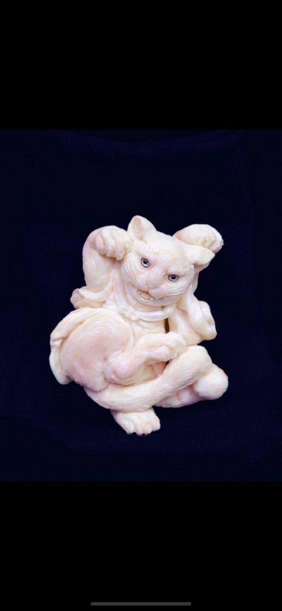 61 352 #猫の日 深海珊瑚で制作した猫又根付。 23/02/22 16:37