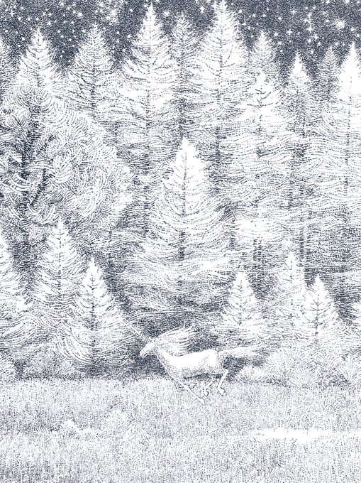 あの森の奥には何が隠れているのだろう。青い鳥はいずこへ。森の奥へと足を踏み込んだら、自分の足で帰っておいで。 #ペン画