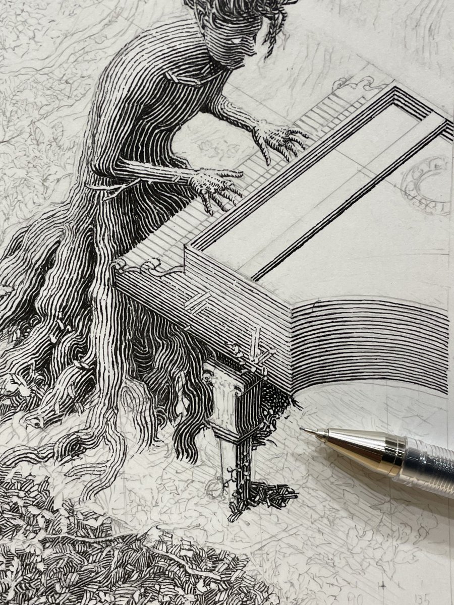 わりと誰よりもペン画好きだけど、描くのは好きではなくて、見るのが好きなんだなとふと思う。そしてこれは好きなペン画だ。創作とは自分の中の好きを起こす事である。