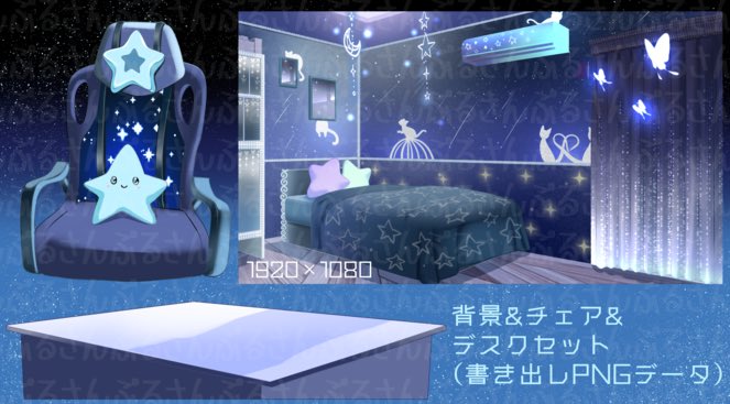 星猫モチーフ⭐️部屋&デスクチェアセット、審査通ったようです〜☺️ 気になった方いらっしゃいましたら覗いて頂けると嬉しいです✨ #イラスト #素材 #Vtuber素材 #nizima nizima.com/Item/DetailIte…