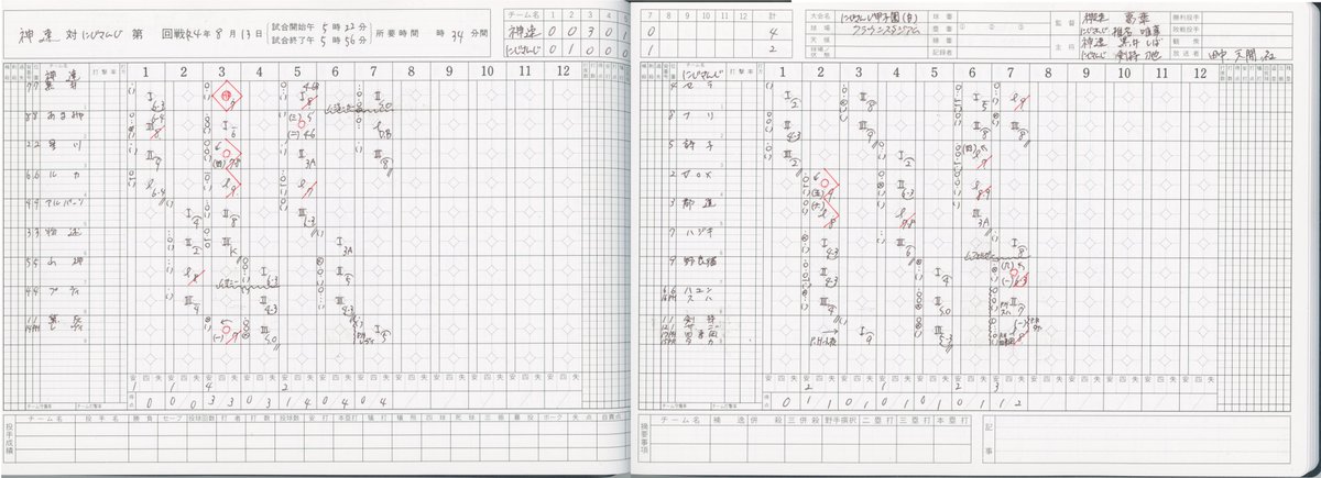 53 544 神速高校の試合を記録したスコアシートをまとめました。葛葉監督、そして神速高校の選手たち本当にお疲れ様でした!アツい試合をありがとう。#にじさんじ甲子園 #KuzuArt 22/08/14 23:14
