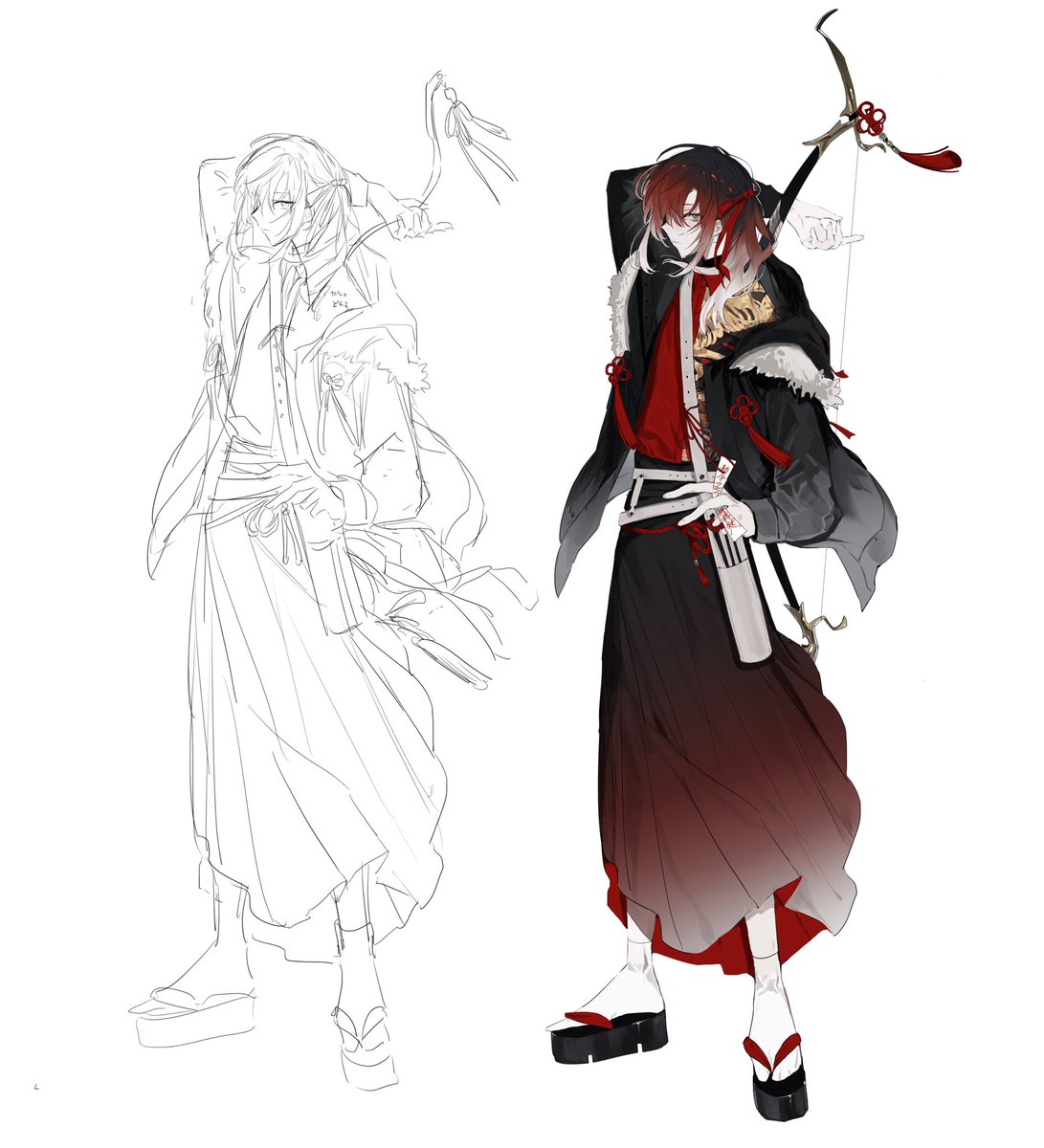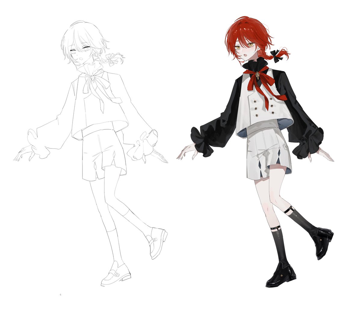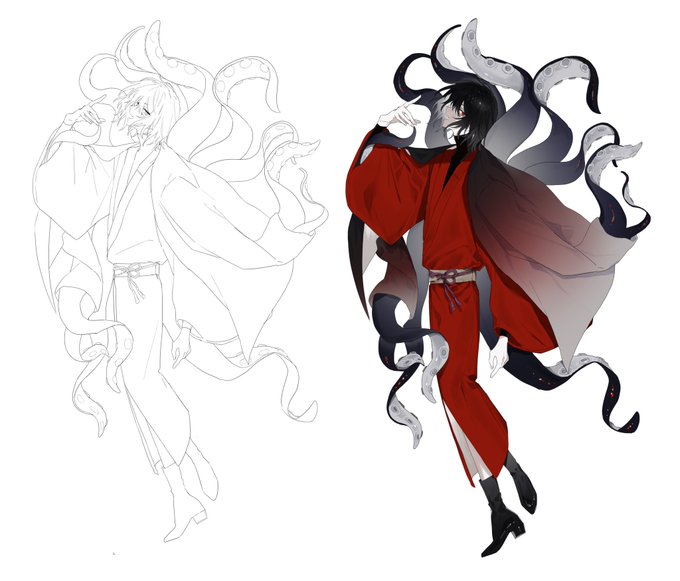 #皆さん線画と塗った後を見せてください 線画やる気度別