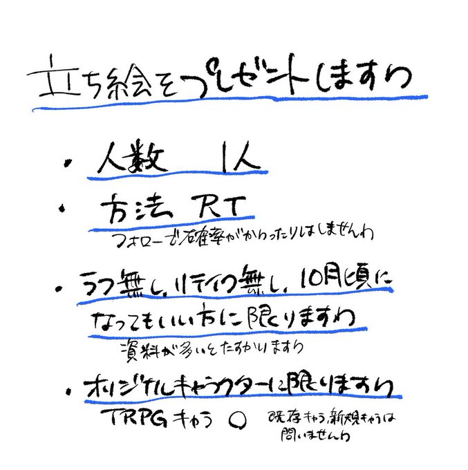 やってみたかったのでノリでプレゼント企画やりますわ 締切は8/4 23:59ですわ 納期に注意ですわ 方法はこのツイートをRTのみですわ