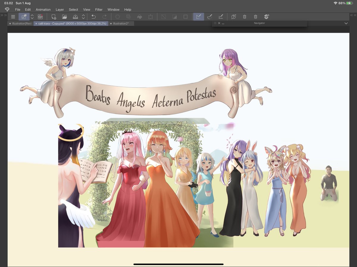 After a year since this project started; Takamori wedding is complete! Thank you again @KagawaRaifu @axeloust #ioarts #HoshinovArt #GambaRisu #graveyART #anyatelier #Reinessance #IRySart #朱雀絵 #キラ絵 #りつあーと #アランの画廊 #イヅル描いたぞ #みやびじゅつ #描クテル #騎士絵画