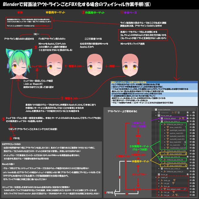 某大手大型IPの仕事でも経験した「アウトラインメッシュごとゲームエンジンに持ってく」をblenderでやると、表情作業でかなりシビアになるぽい。 とはいえblender知識浅すぎマンだから根底から改善できるのかも