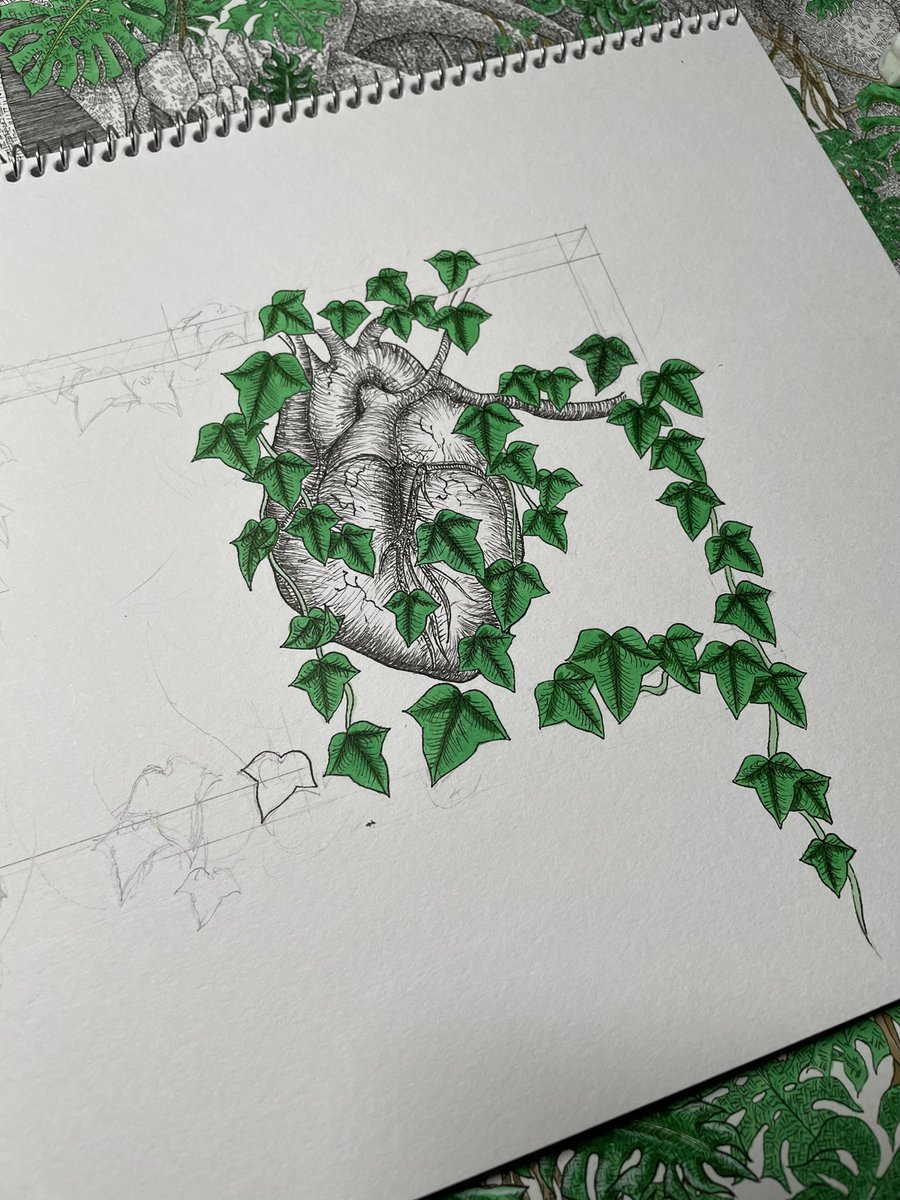 骨終了と言いたいとこだけどまだ若干残ってる。 葉っぱ何枚描けば埋まるかな? #絵描きさんと繋がりたい #ペン画 #コピック