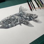 シーラカンス描きました。 #絵描きさんと繫がりたい #シーラカンス #色鉛筆画