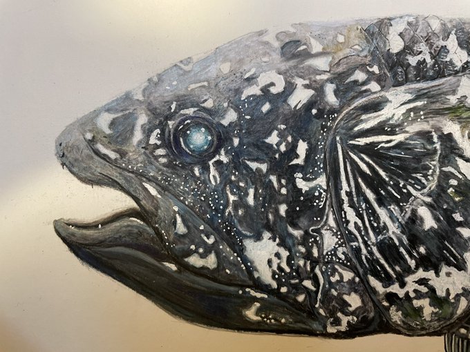 0 12 シーラカンス描きました。 #絵描きさんと繫がりたい #シーラカンス #色鉛筆画 22/01/04 22:17
