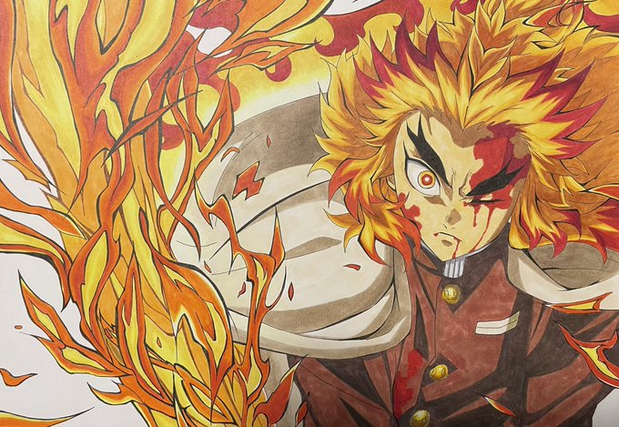 煉獄杏寿郎完成しました! いいね、リツイートお願いします! #絵描きさんと繋がりたい #煉獄杏寿郎 #鬼滅の刃 #コピック