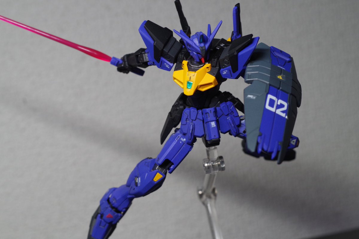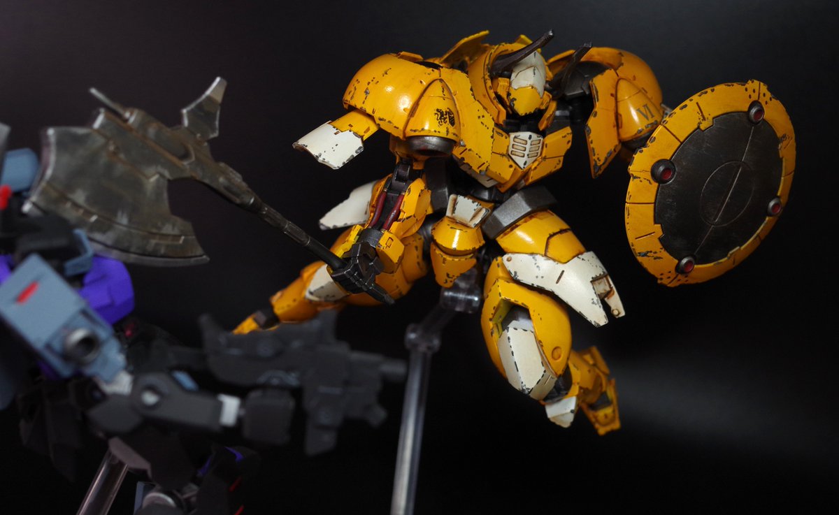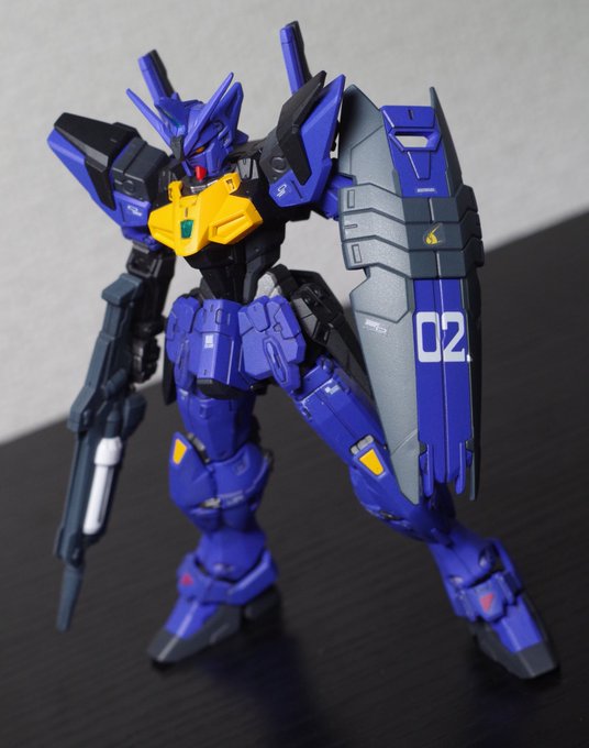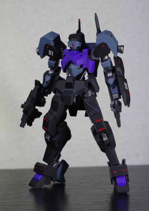 HGIBOイオフレーム獅電改作りました! なんとなくオリジナルカラーで塗って、武器はアルトのマシンガンを持たせました。なんか獅電ってボーダーブレイク感あってカッコいいね! #ガンプラ #ガンプラの画像を貼るとRTされると聞いて