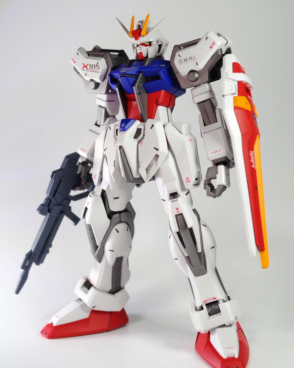 1/100ストライクガンダム作りました! 最近のシュッとしたのもいいけど、マッシブで太くて逞しいストライクが作りたくなったので、旧1/100を丁寧に作ってみました!めちゃ造形いいですよねコレ! #ガンプラ #ガンプラの画像貼るとRTされると聞いて #ガンプラ好きと繋がりたい
