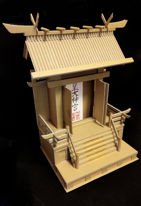 ダンボールで作った神棚です!! 技術の先生に神棚を作ってと言われたので作りました。製作時間は約50時間です。できた次の日に先生に渡したのですごく悲しかったです。😭 #本物に見えたらRT #あなたがまだ見たことがない世界かもしれない作品展 #ダンボールアート #ダンボール工作 #ダンボール #工作