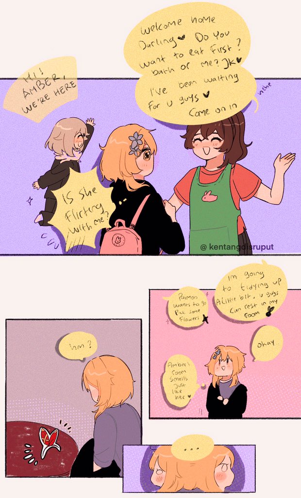 Traveler relationship with puppy/bunny like pyro character #原神 #lumiamber #tohmather #thomather