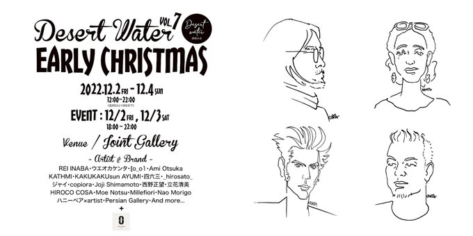 砂漠の水vol.7【Early Christmas】2022.12.2-12.4 原宿 #JOINTgallery joint-harajuku.com/joint2nd/ #稲葉怜 @InabaInfo 企画イベント #似顔絵 で参加します!予約も受付ています!12/2 (fri) 16:00~19:30 12/3 (sat) 17:00~21:00 所要時間: 5〜10分 お一人3000円 #ウエオカケンタ #イラスト #kentaueoka