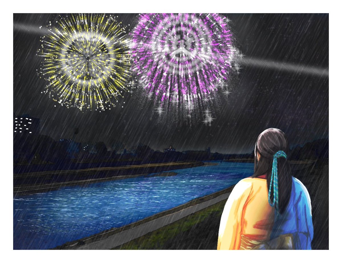 #みなさん去年の今頃はどんな絵描いてましたか 『みんなで作るオカザキの花火』🎆
