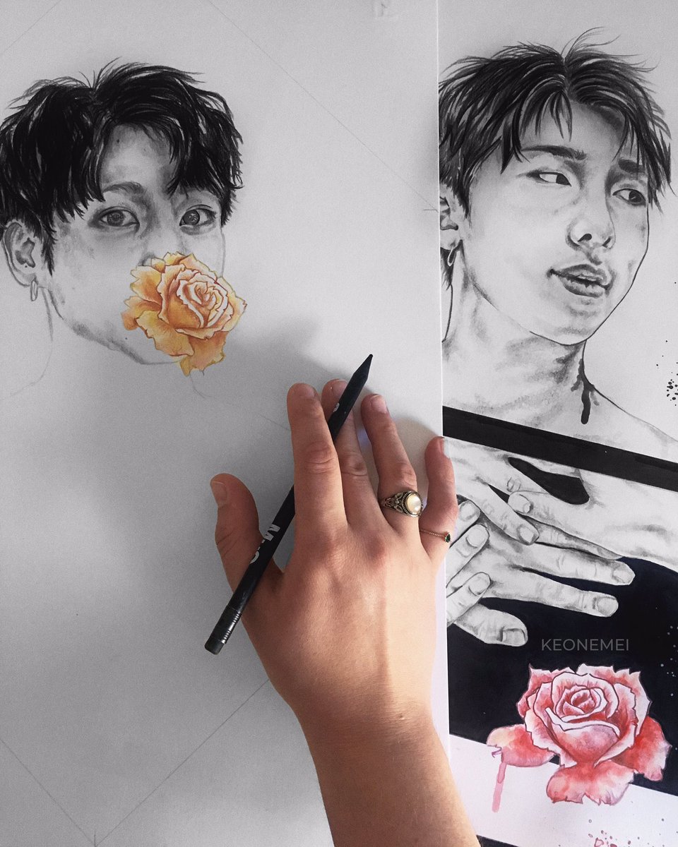 a new painting for my BTS series is coming, stay tuned 🌺 #jungkook #keonemei #Jungkookfanart #art #btsfanart #전정국 #방탄소년단