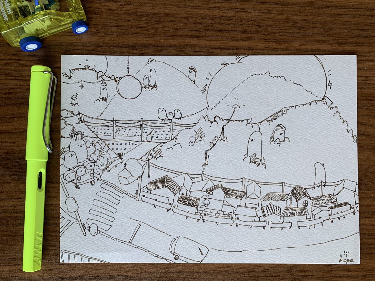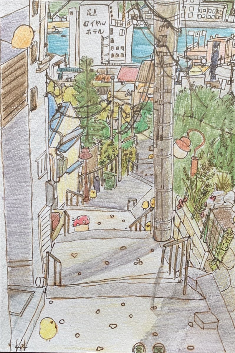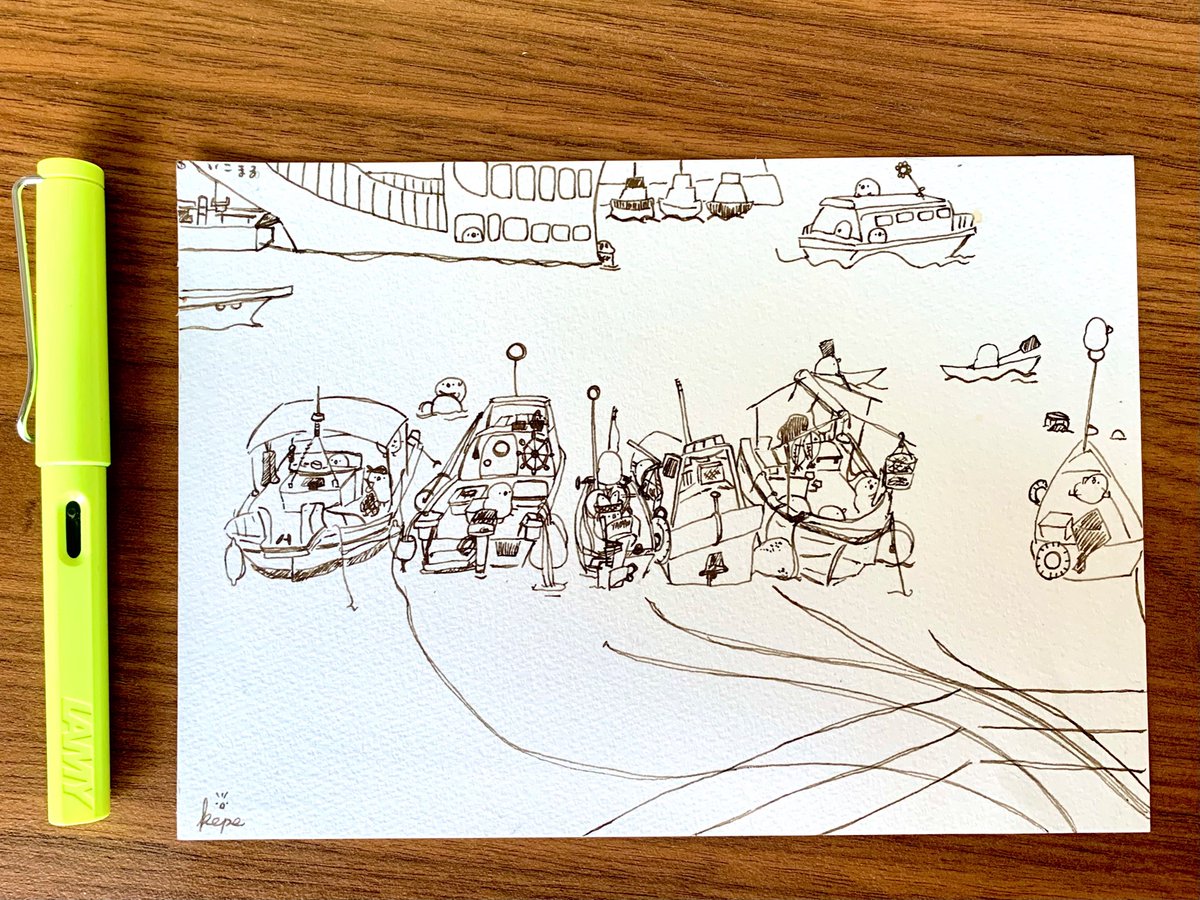 いつぞやのスケッチ🎨 ポニョの舞台です🛳🚣♂️ これも色塗って展示出すぞぉ〜 #ペン画 #ペン画を流してペン画民を増やそう