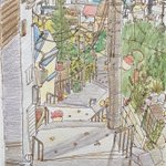よーやっとスキャンしました。 「坂のある街」 #ペン画 #アナログイラスト #水彩