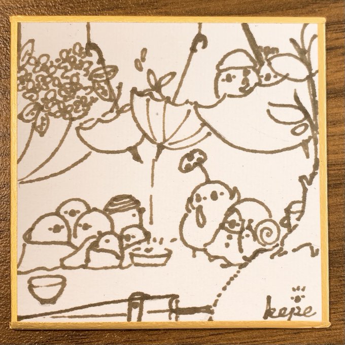 雨で寒かったから描いたミニ色紙 インクぐんぐん吸ってちょっとぼんやり 水彩で塗って大丈夫だろか☂️ #創作 #ペン画