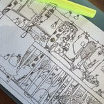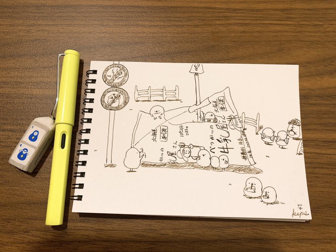 おそと作業な日。(サイゼ) 巾着にごりごり。 #ペン画 #アナログイラスト