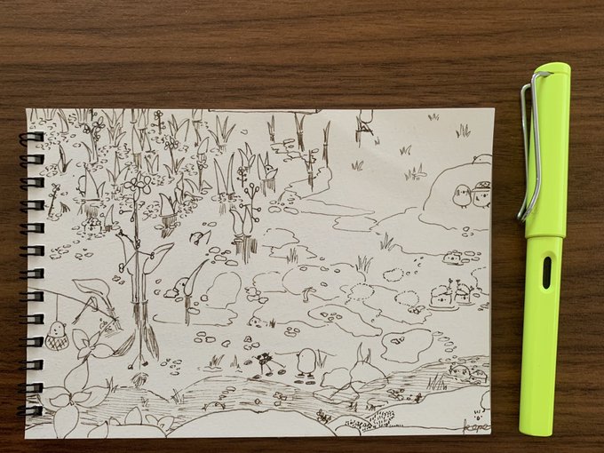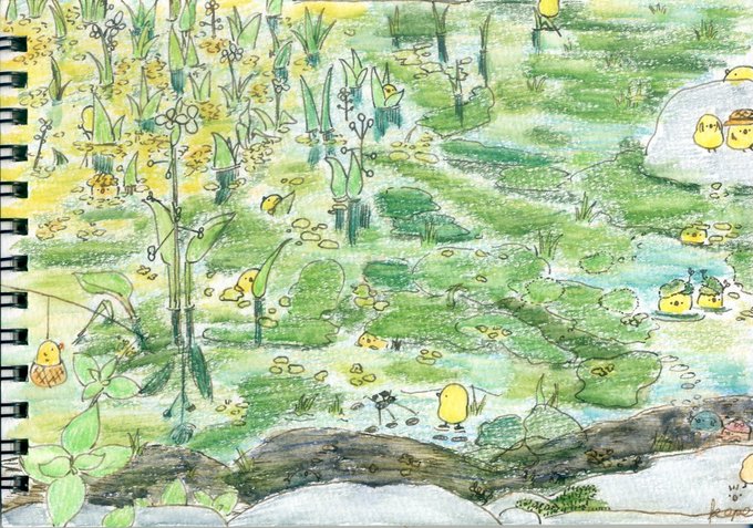 「お池のスケッチ」 お次はもっと小さなものの世界。 水面にも、水中にも。 #創作 #illustration #ゆるいイラスト #ペン画 #ペン画を流してペン画民を増やそう