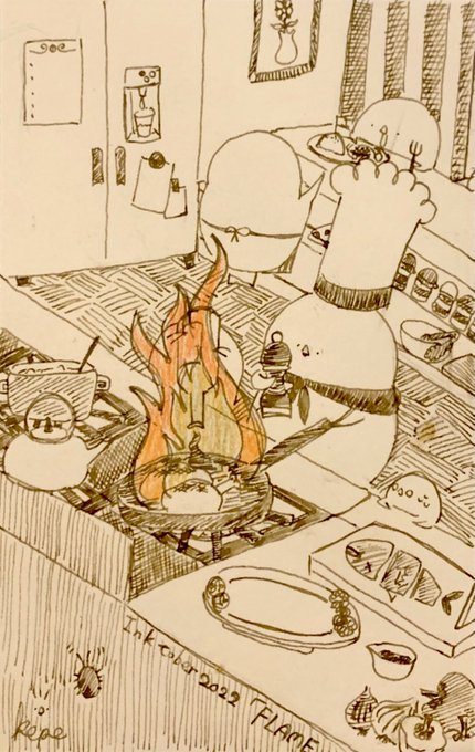 1 14 「Flambé」(5.Flame) ボォオォ🔥 #創作 #ペン画 #illustration #inktober2022 22/10/07 20:56