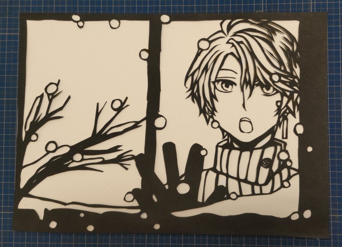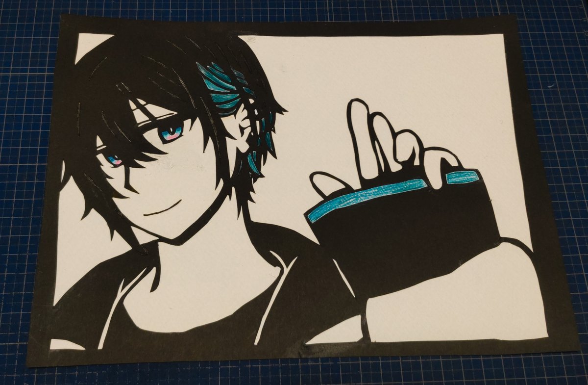黛の配信を見て過ごした日々はかけがえのないものだった。少し早いけど今までありがとうのFAあげとく。俺らしく切り絵で。 #灰画