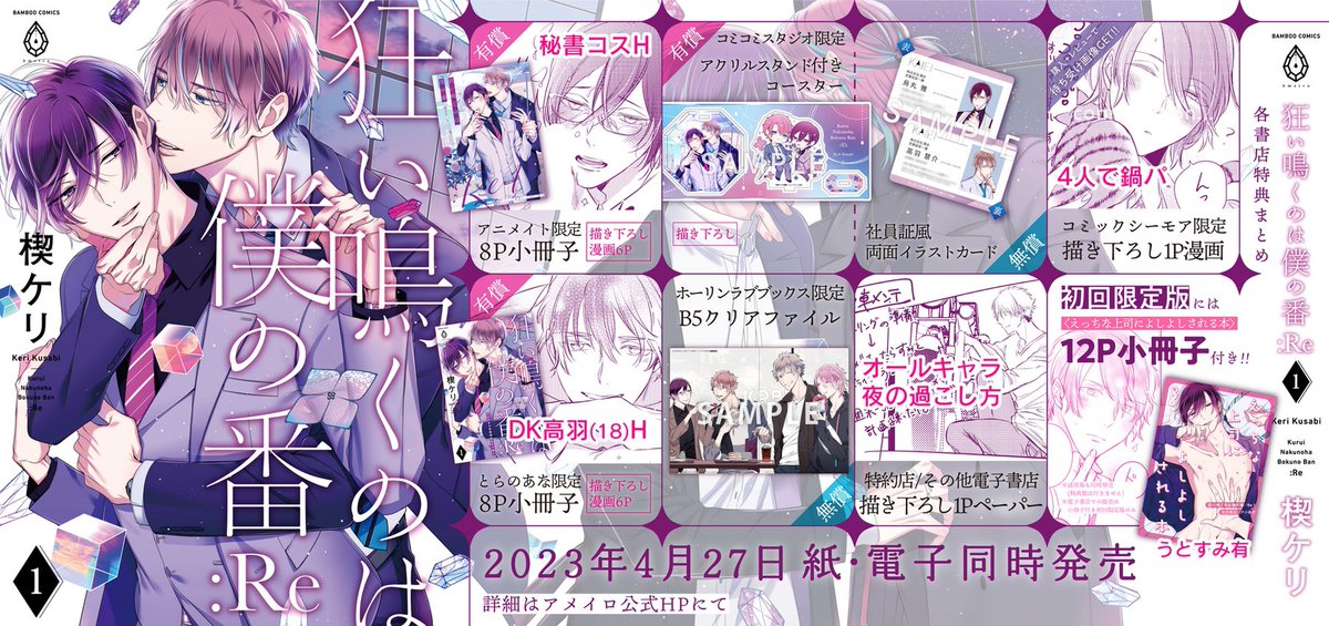 コミックス「狂い鳴くのは僕の番:Re①」発売中です✨ (イラスト修正版再掲) ❦特典まとめ❦ 💙アニメイト【8P小冊子】 tinyurl.com/2gh4gnqs 🐯とらのあな【8P小冊子】 tinyurl.com/2hakc8zd 💗コミコミスタジオ 【アクスタ&社員風カード】 tinyurl.com/22osbtrp 📙シーモア電子… twitter.com/i/web/status/1…
