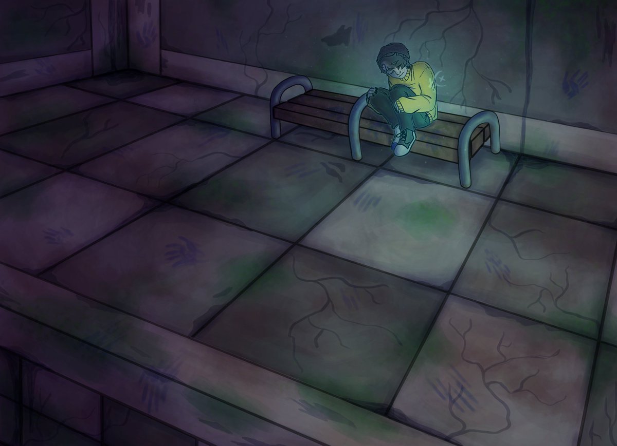 "He curls up on the concrete for his 2,301st night on the platform. Falls asleep." I am going to sue Wilbur Soot for EMOTIONAL DAMAGES. /j (Retweet please! 💙) #dsmpfanart #ghostburfanart #wilbursootfanart