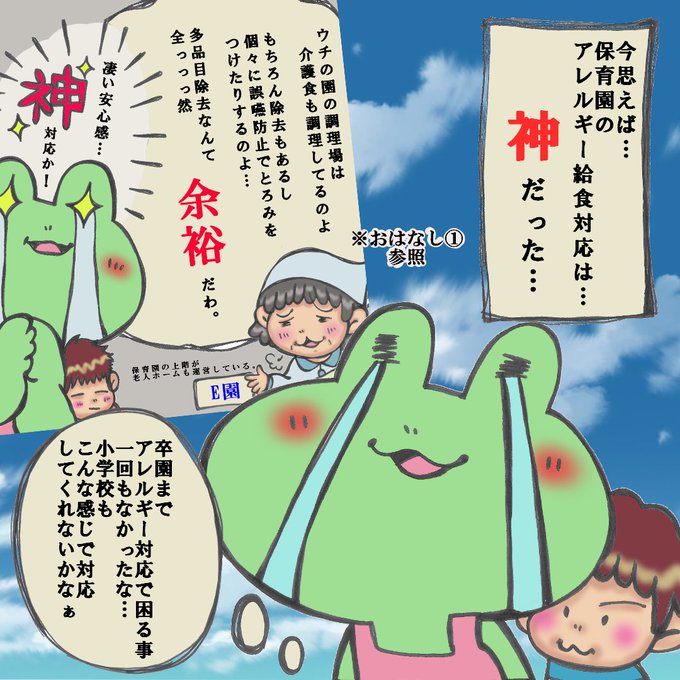 アレルギー息子のおはなし① アレルギーっ子ママ… 保育園見学は絶対した方が良いです! 私は行きたい園が如何にアレルギー対応してくれるかを 役所の方に面接時に訴えて倍率高い所に入れました! (参考までにですがw) #漫画が読めるハッシュタグ