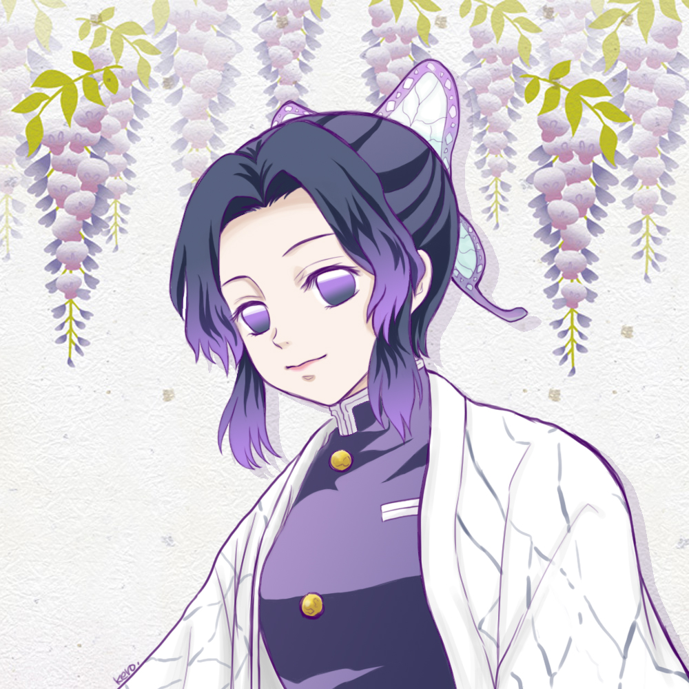 2 13 🎉しのぶさんおめでとう🎂 アニメ絵見ながら初描き←がんばって似せようとした(力尽きたので背景は素材集から) #胡蝶しのぶ生誕祭2021 #胡蝶しのぶ誕生祭2021 21/02/24 19:09