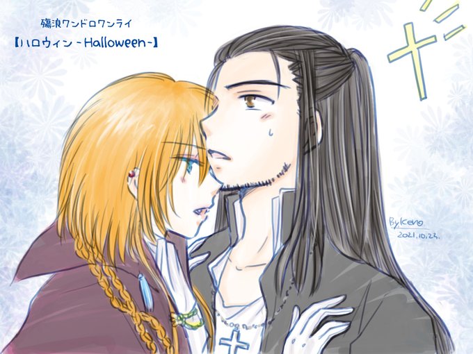 13 29 #殤浪ワンドロワンライ お題【ハロウィン(Halloween)】 吸血鬼巫謠さんに献血する神父不患さん。 殤「はい、どうぞ」 浪「…いただきます」 21/10/23 17:47