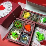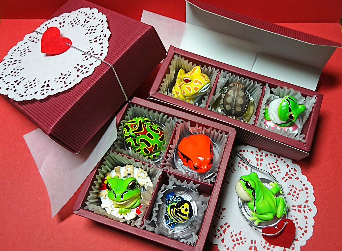 男子の頭の中は そろそろバレンタインの チョコでいっぱい 女子達、生き物好きの 気になる彼に こんなスイーツな子達いかが? 食べられないけど(^_^; #ワンフェス #ワンフェス2020冬 #wf2020w #WF2020 #ハンドメイド #かえる #カエル #frog #かえる好き #ドール #フェイクスイーツ