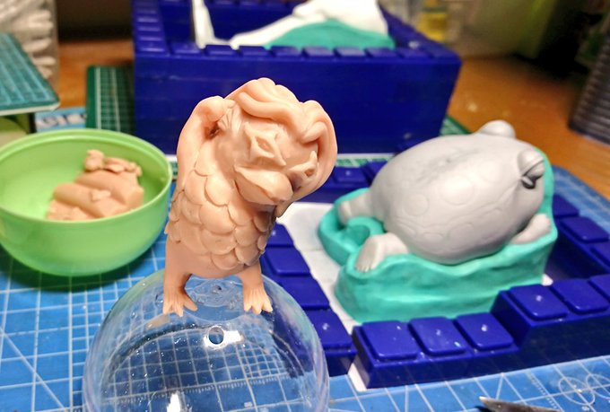 6 12 限界の殻をブチ破り 今夜も塗装下地やるよん トン・ボ 豚 ・ボ #wf #wf2019w #ワンフェス #ワンフェス #ブタ #クリーチャー 19/01/24 15:53