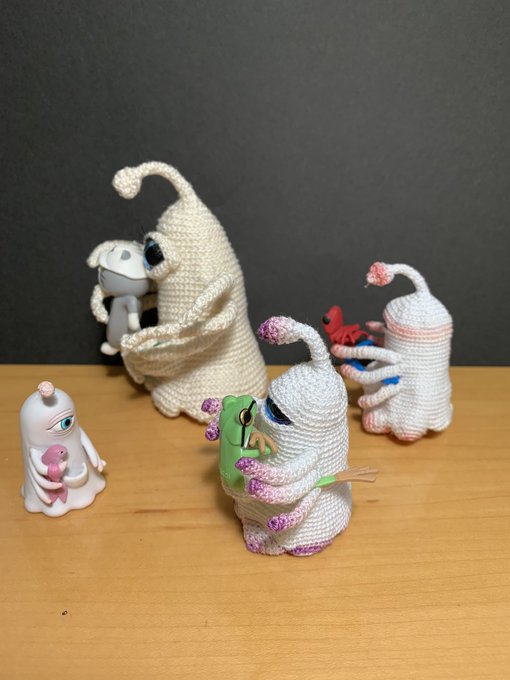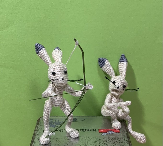 金色のガッシュをあみぐるみ #金色のガッシュ2 じゃなくて 小さいガッシュ にょほ羊毛作家さん@nyofoolest のアイディアを見て、紫外線ライトで「ザケル」してみたり 糸:オリムパス レース糸金票40番 #あみぐるみ #amigurumi