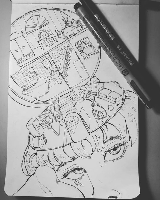 #inktober2019 day 2: Mindless LADIES like and SHARE if you too have a POLLY POCKET HOUSSE instead of a BRAIN #inktober #inktoberday2 #inkdrrawing #lineart #sketch #sketchbook #sketches #doodle #doodles #traditionalart #myart #artistsontwitter #artoftheday #myartwork