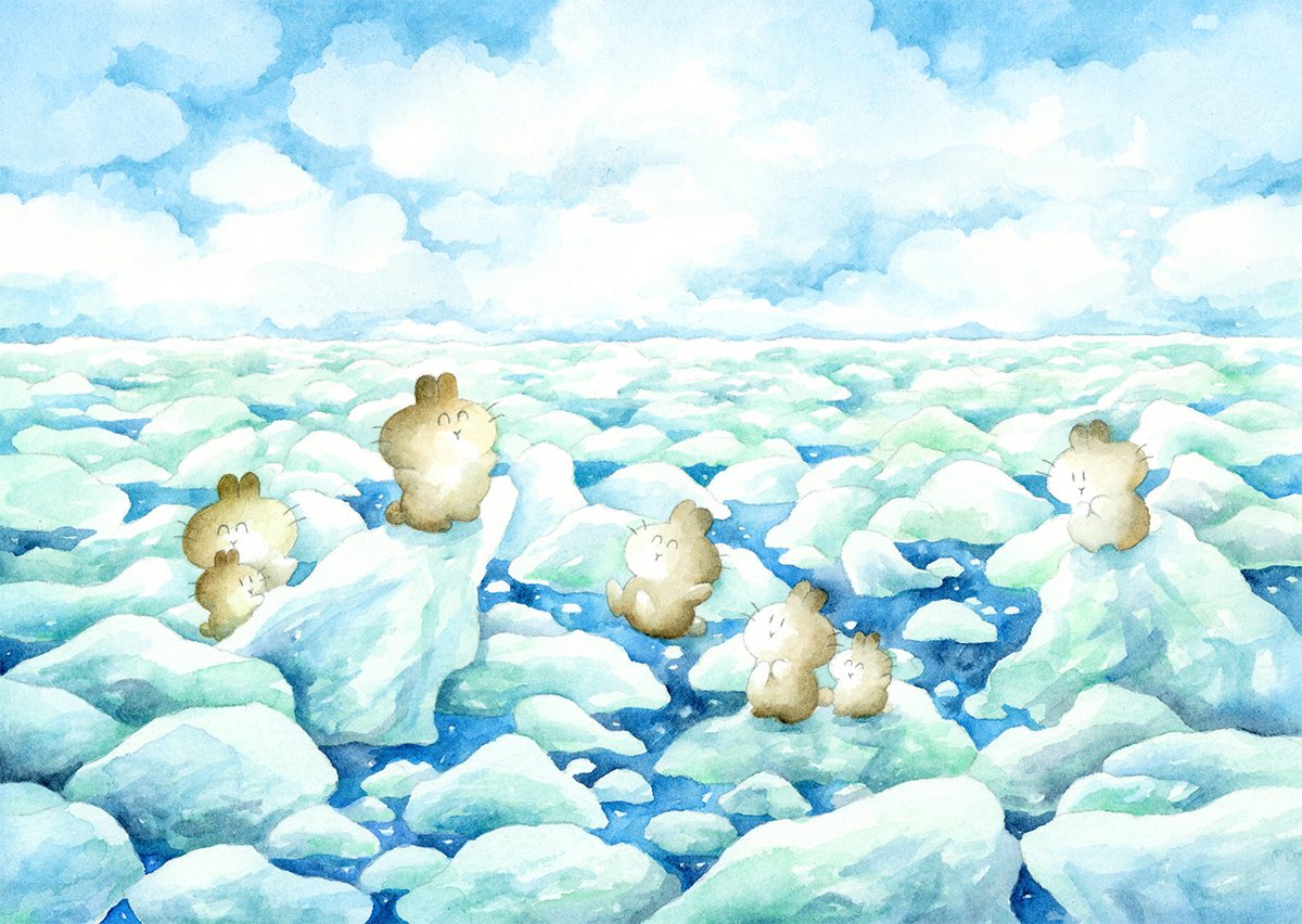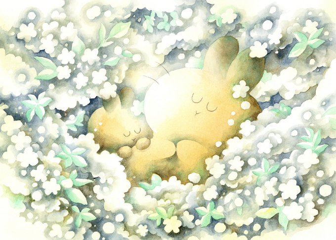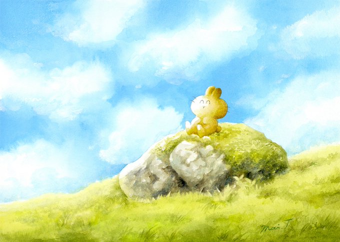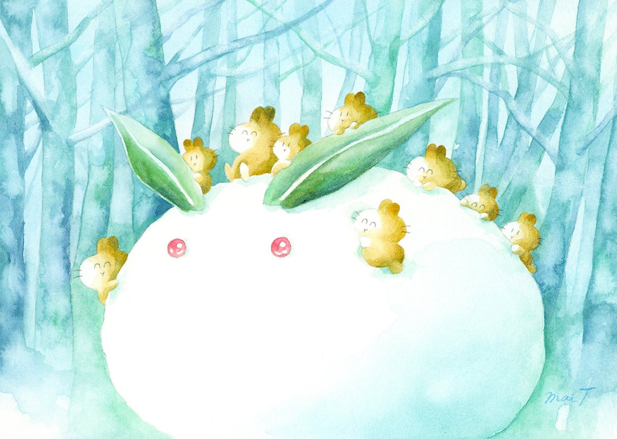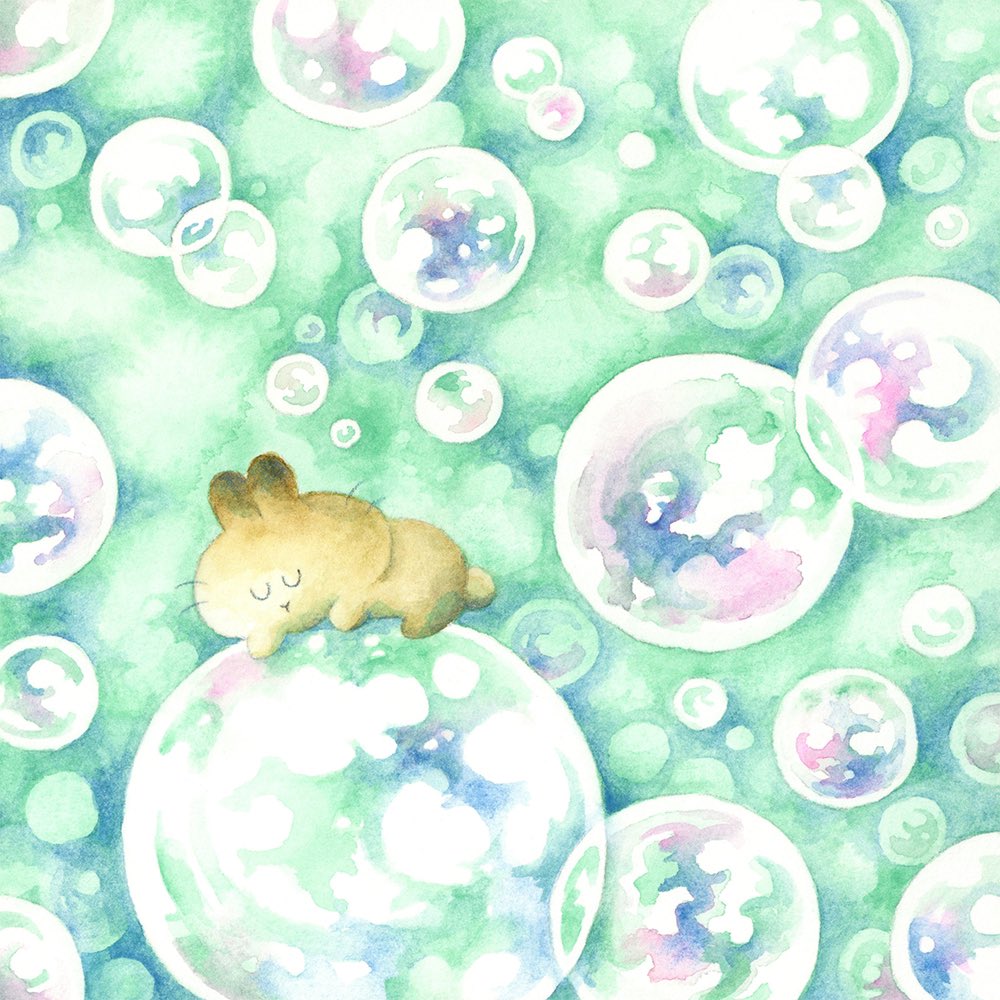 #アナログ絵で魅せてみよ #透明水彩 #watercolor 透明水彩やアクリル、色鉛筆を使って、ふわふわのいきもの『うさらん』のいる風景を描いています