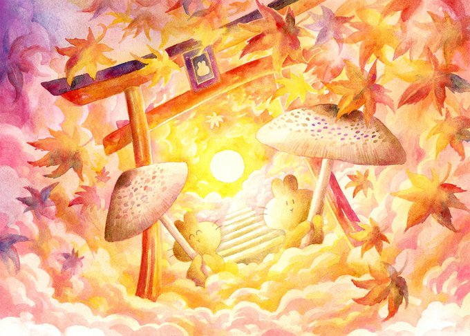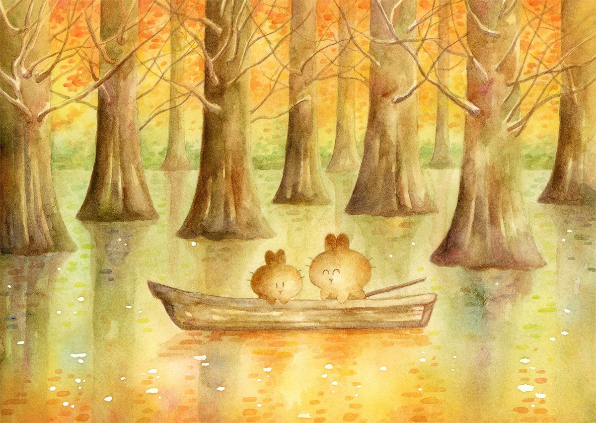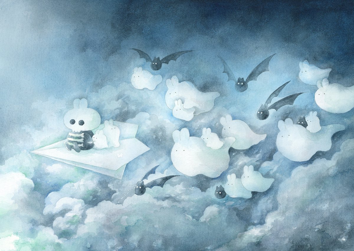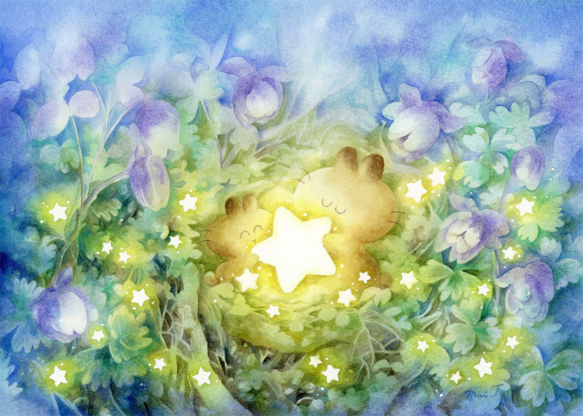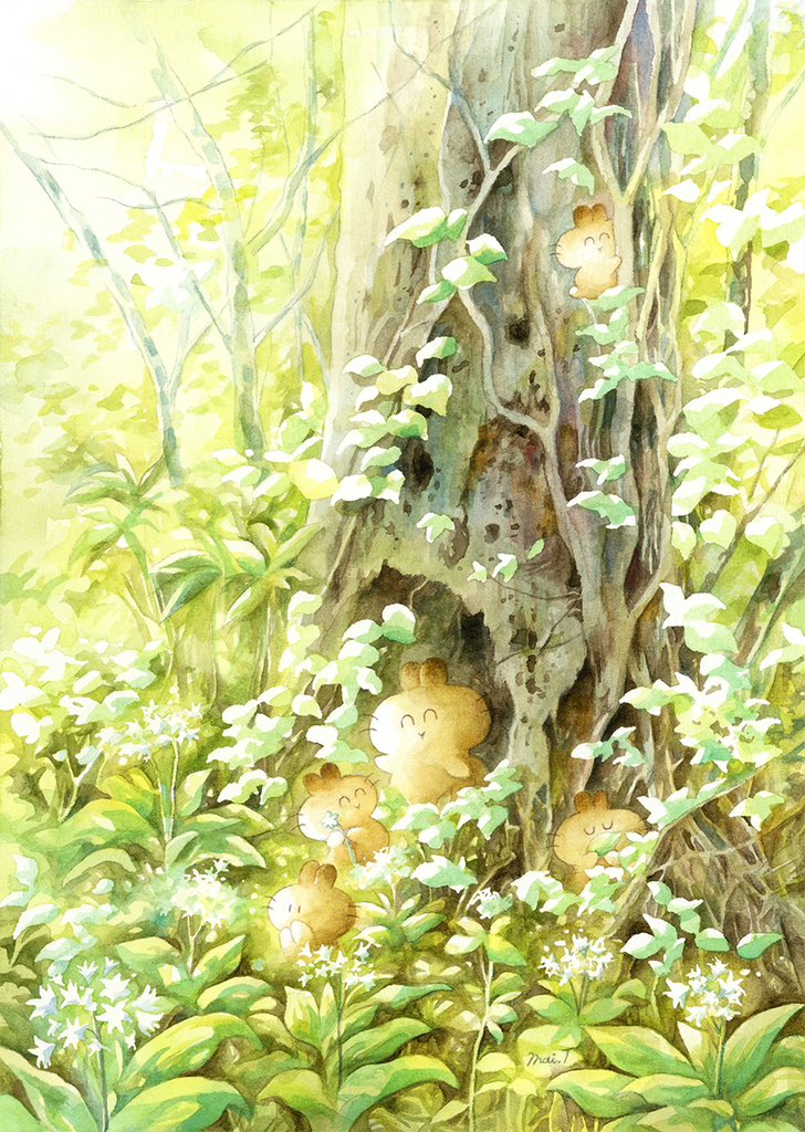 #アナログ絵で魅せてみよ #透明水彩 #watercolor 透明水彩やアクリル、色鉛筆を使って、ふわふわのいきもの『うさらん』のいる風景を描いています