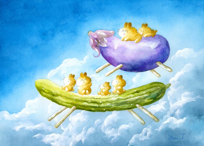 『 お盆の空を見上げれば 』 #うさらんカレンダー2023 #透明水彩 #watercolor