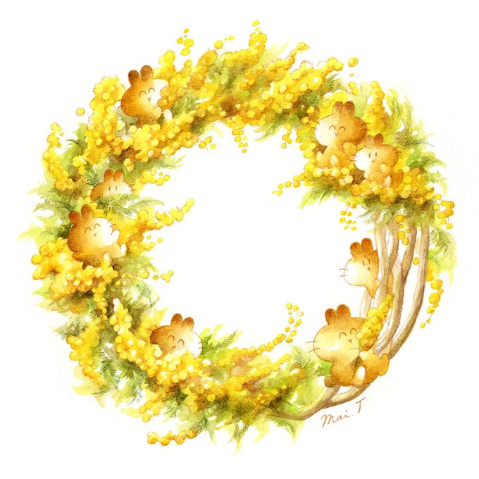 『 ミモザちゃんのわっか 』 #ミモザの日 #透明水彩 #watercolor