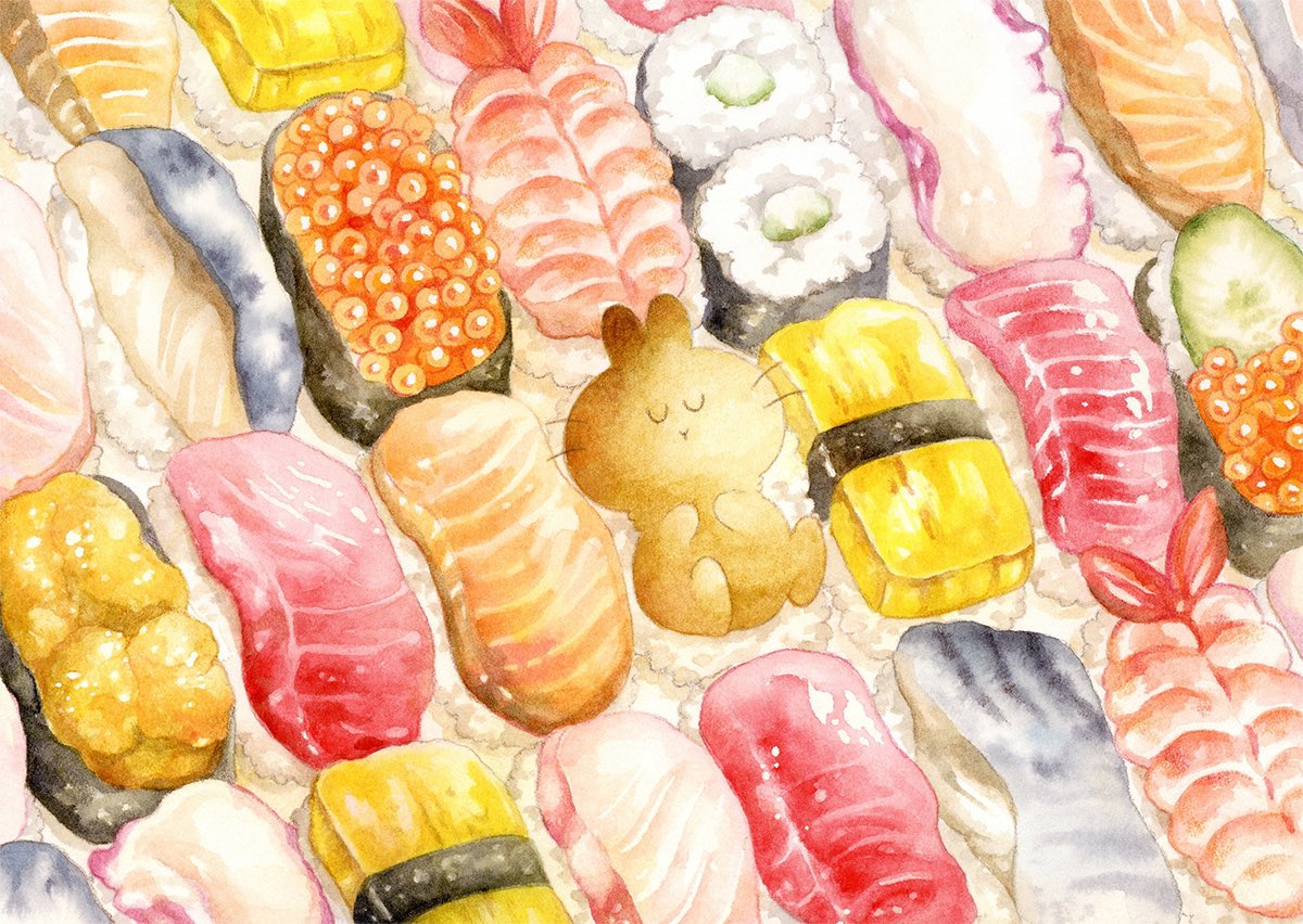 『 るんるんお昼ごはん 』 #うさらんカレンダー2023 #透明水彩 #watercolor