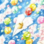 9 62 #アナログ絵で魅せてみよ #透明水彩 #watercolor 透明水彩やアクリル、色鉛筆を使って、ふわふわのいきもの『うさらん』のいる風景を描いています 23/02/24 11:53