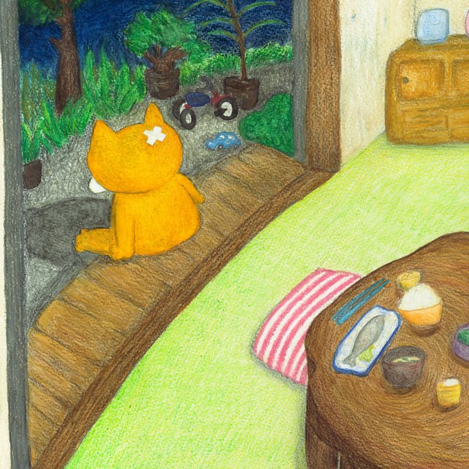 夕飯も食べずに、 「あたらしく、」を考える けすん #あたらしく展 #イラスト好きな人と繋がりたい #猫 ではないのです(笑) #ゆるキャラ