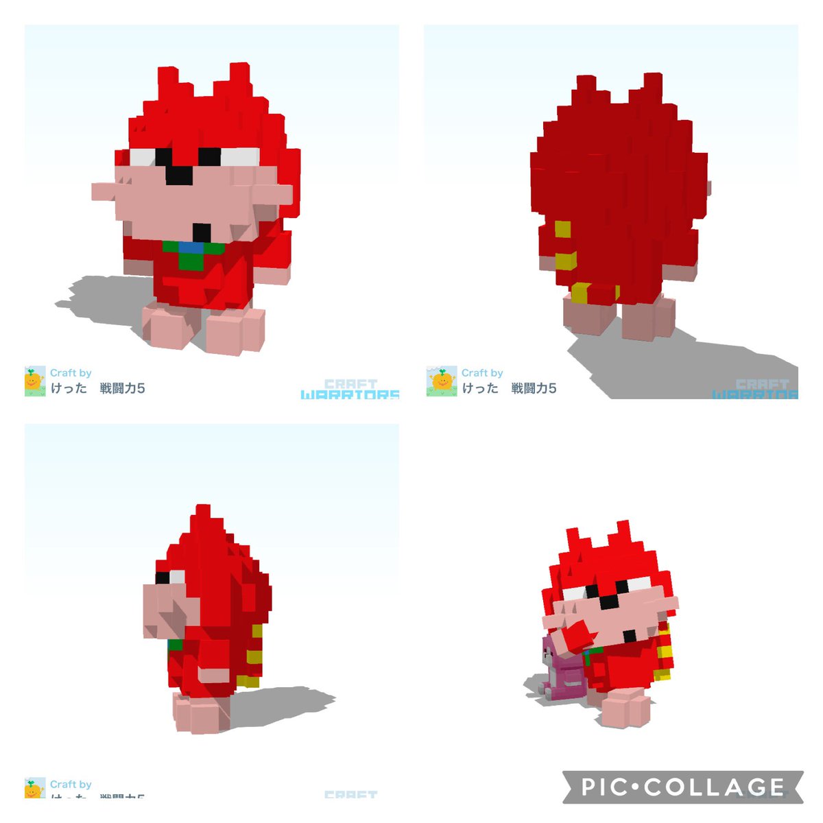 1 17 #craftwarriors #ドット絵 3体とも3D化はすごく苦労しました ・ディグダグ ドリルの為、元祖穴掘りキャラは作らねばなるまい 目は並んで見える様に工夫 どこかにそっくりな青い妖精いたな… ・プーカ 見てて安心する ・ファイガ ファイアの上位… 正面から見るとヤバいけど 精一杯頑張ったよ… 22/01/12 09:38