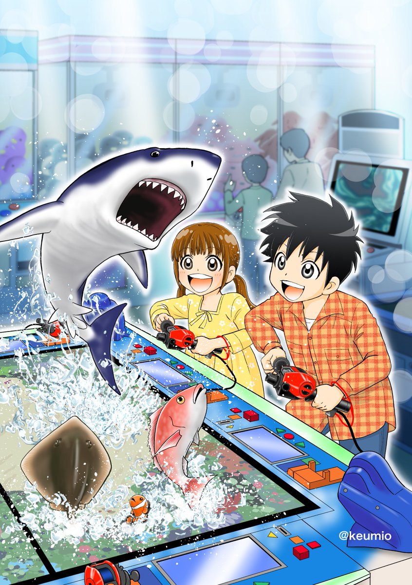 【宣伝】竿型コントローラーで魚を釣るアーケードゲーム「釣りスピリッツ」のPR漫画をフルカラー7p描きました 釣りスピ設置店に貼ってあるポスターからQRを読み込む形で読めます 設置店の検索↓ bandainamco-am.co.jp/am/mg/spirits/…