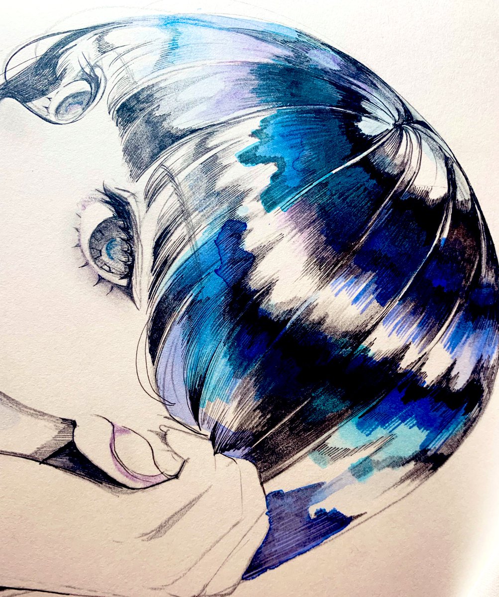 最近のイラストの細かすぎるこだわり 眼球の血管とコンタクトレンズの縁の影