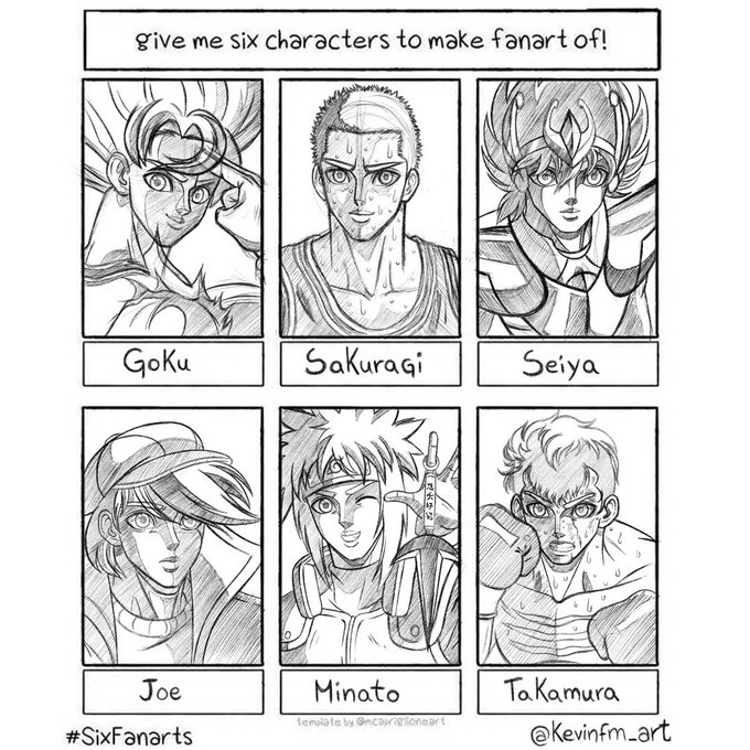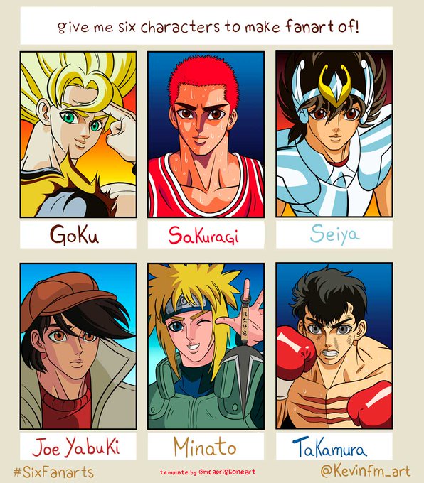 Here is my new #sixfanarts With my favorite characters of all time 😊🎩🌟👨🏻🎨 #sixfanartschallenge #fanart #fanart #fanartanime #sixfanart #anime #goku #hanamichisakuragi #seiya #joeyabuki #minatonamikaze #takamuramamoru #drawing #art #kevinfarias #clipstudio #clipstudiopaint